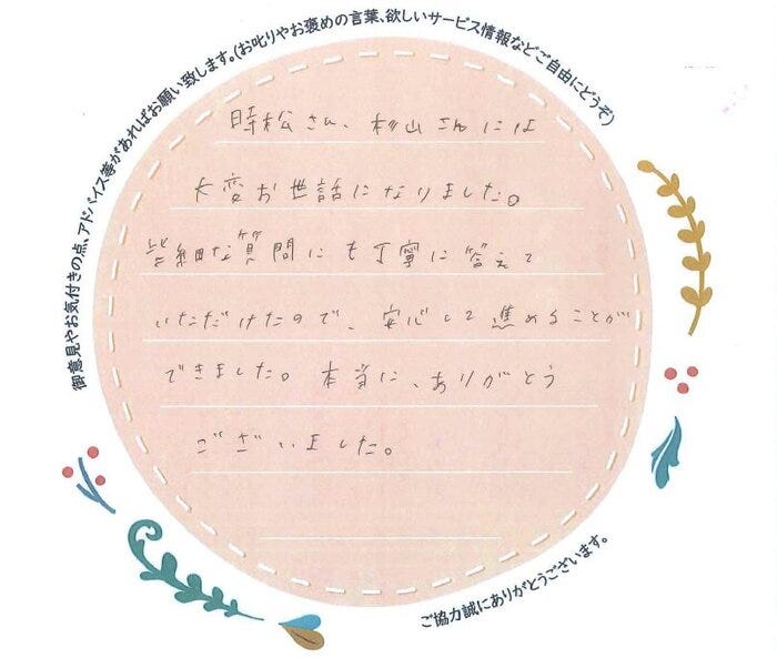 今回のお取引が無事に完了しましたこと、スタッフ一同大変嬉しく感じております。