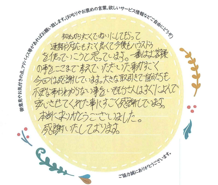 この度は数ある不動産会社の中からハウスドゥをご利用いただき、誠にありがとうございます。