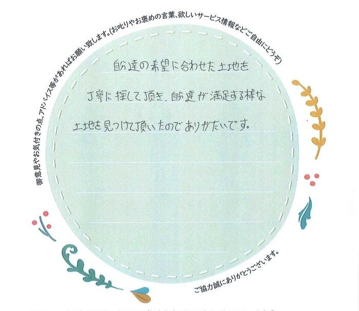 ご満足いただけたとのお言葉を励みに、これからもお客様に寄り添ったご提案を心がけてまいります。
