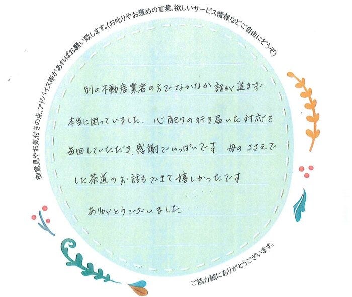 この度は数ある不動産会社の中からハウスドゥをご利用いただき、誠にありがとうございます。