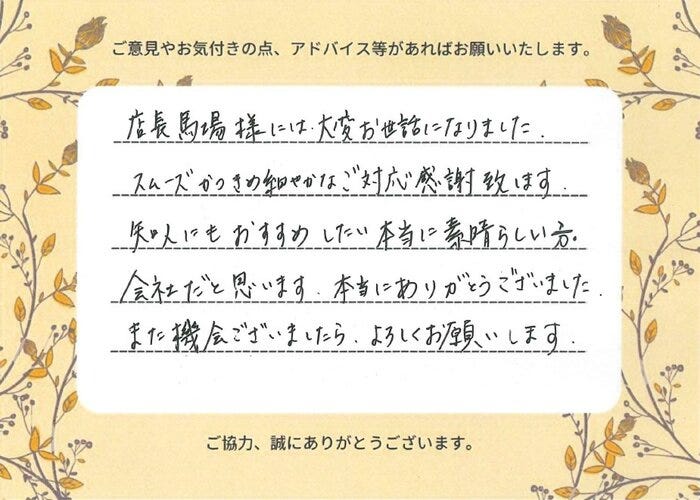 今回のお取引におきまして、ご満足いただけたようでしたら幸いでございます。